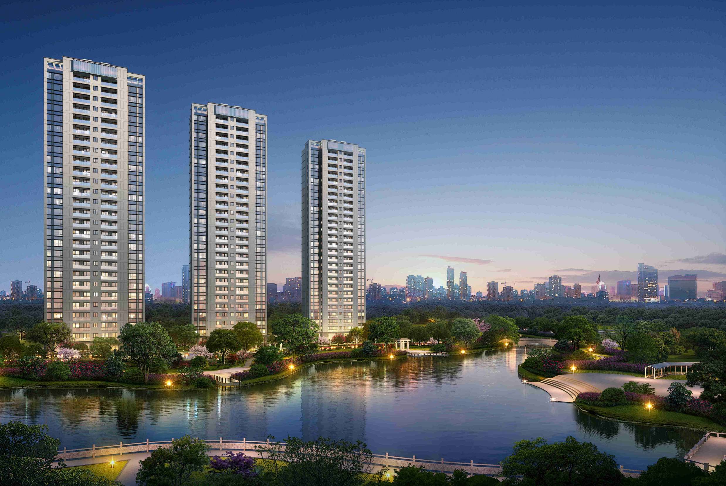 整個(gè)項(xiàng)目占地1.13萬方,總建面積約4.99萬方,地上約3.38萬方,地下約1.51萬方。由4幢27層高層圍合而成,其實(shí)1號(hào)樓是自持,2、3、4號(hào)樓采用一字排開的布局,使得公園的景觀資源能滲透進(jìn)項(xiàng)目?jī)?nèi),最大化利用了公園的景觀資源,從來名貴,必居于湖畔。并且,古人云,臨湖而居,盡得財(cái)氣。